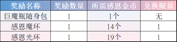 本次将开启为期两周的感恩节限时活动。感恩节当天登录游戏即可获得限定道具【感恩魔杖】,完成活动限时加码副本可额外获得【感恩节金币】,集齐一定数量后可前往银行兑换【感恩光环】与【感恩魔环】哦!前8名集齐【感恩套装】的玩家可获得【雷霆福袋·绑*5】