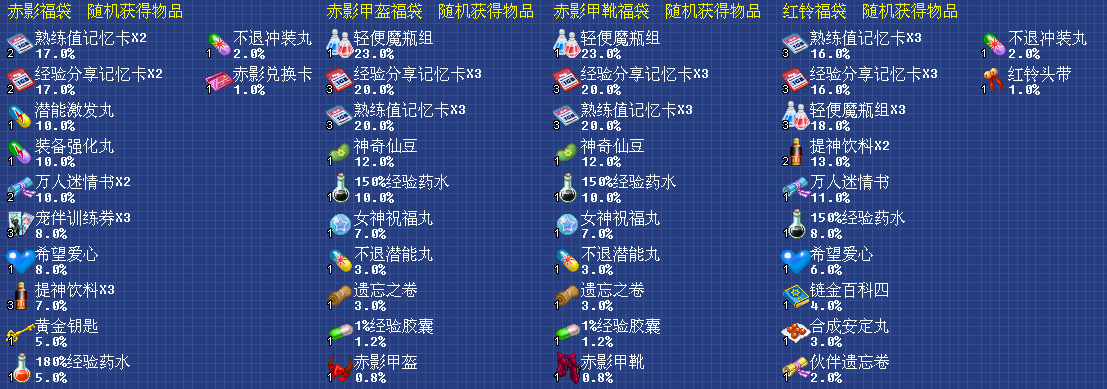 本周点数商城上架【赤影福袋、赤影甲盔福袋、赤影甲靴福袋、红铃福袋】