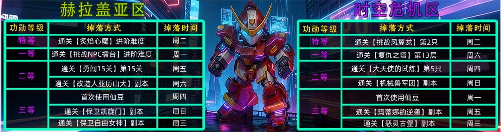 勋章掉落任务:每周掉落任务不同,将会在更新公告公示每周的勋章掉落任务。
