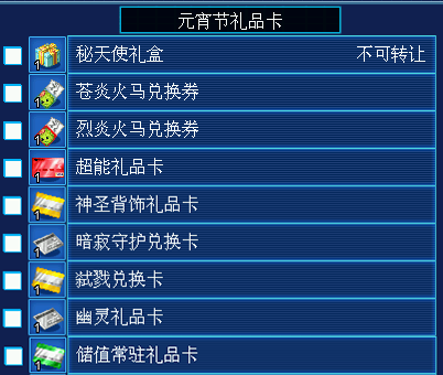 元宵节礼品卡:打开后可在下列奖励中任选其一。