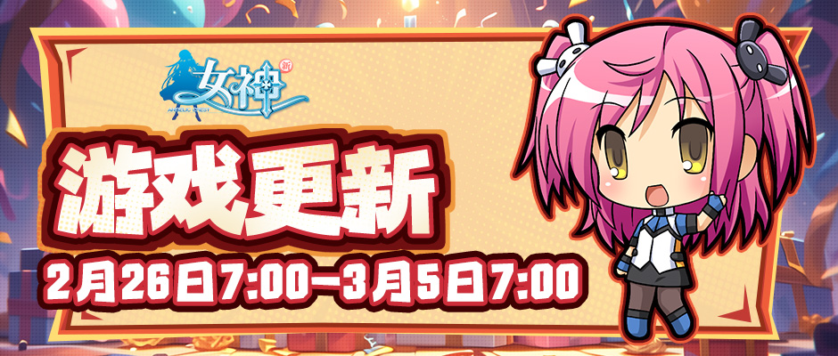 为了给大家带来更好的游戏体验,《新女神》将于2026年2月26日7:00-7:30进行维护更新,更新期间玩家将无法登陆游戏,如未能按时完成,则开服时间顺延,开放时间另行通知。