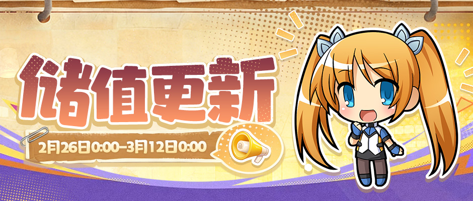 活动时间:2026/2/26(四)0:00至2026/3/4(三)23:59止(首充活动每周更新,储值活动每两周进行更新)