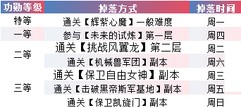 本周功勋掉落时间:10月9日07:00-10月15日23:59