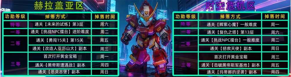勋章掉落任务:每周掉落任务不同,将会在更新公告公示每周的勋章掉落任务。