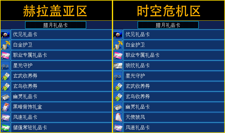 幽灵礼品卡(新老区同步):可任选以下道具之一: