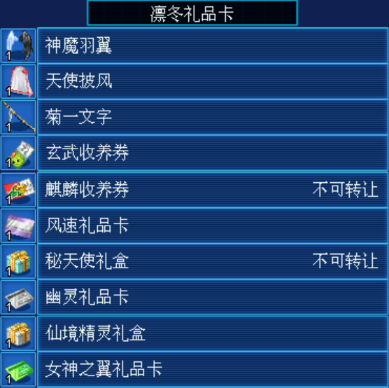 凛冬礼品卡:打开后可在下列奖励中任选其一