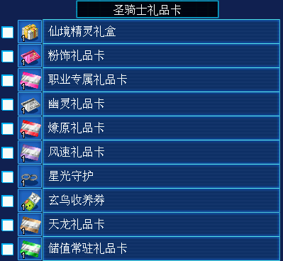 天龙礼品卡:可任选力量、魔法、速度主属性的天龙之一或其他优质道具的兑换卡。均为五体技能。