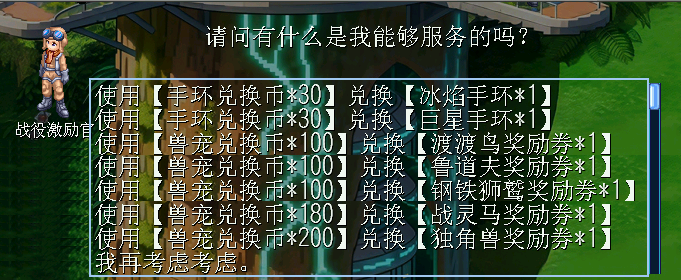 兑换内容:新增手环和兽宠兑换选项