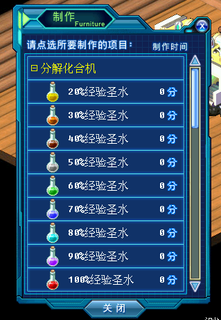 现通过家具【分解化合机】可进行低级经验圣水的合成升级: