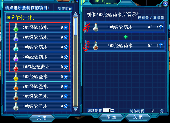 2、经验药水可合成