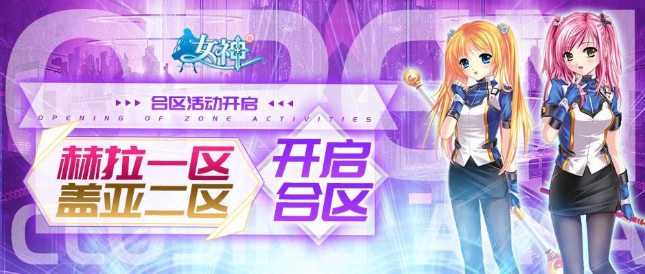 将原本的盖亚区和赫拉区合并,大家以后就可以在一起玩耍啦!合区完成后将会开放许多合区活动,大家可以一起进行冲分打本咯。同时合区中,可能存在的各种问题,也欢迎大家前来反馈,我们会尽快处理