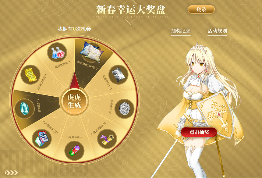 活动内容:每日登录可抽奖,分享还有额外次数。
