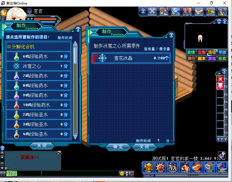 1.【雪花冰晶】获取方式调整调整内容:自本周起NPC活动大使将关闭,同时兑换内容【雪花冰晶】的获取方式将调整为家具合成,加入分解化合机内;
