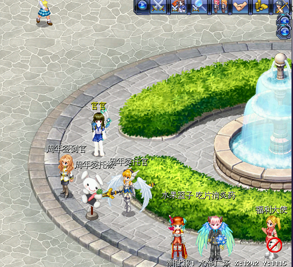 每天可前往水池广场【周年签到官】处签到领取三周年礼物,