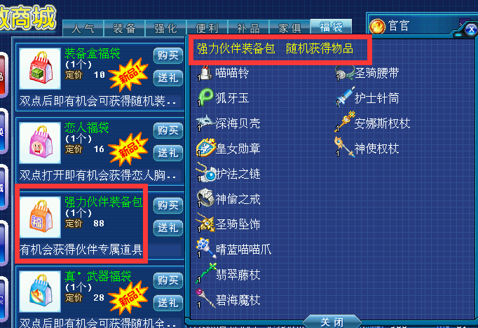 物品说明:必出随机一位伙伴的装备或饰品;
