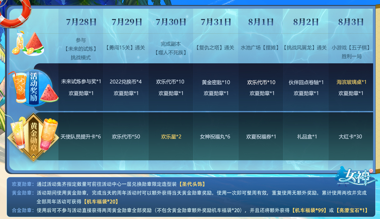 夏日狂欢,勋章来袭。7月28日更新公告。