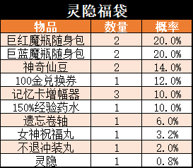 商城上架【灵隐福袋】、【灵动福袋】、【明夜之星福袋】;同时4款经典福袋限时返场.商城长期福袋为【坚毅勇气福袋】8折优惠.