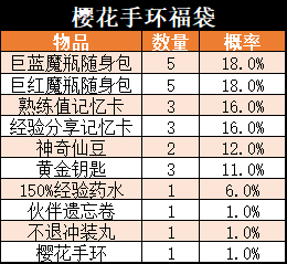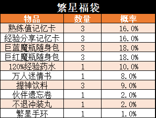 【冰霜福袋】、【繁星福袋】、【樱花手环福袋】、【幽火手环福袋】、【星辰福袋】、【圣诞碎雪福袋】、【开花手环福袋】、【曙光福袋】