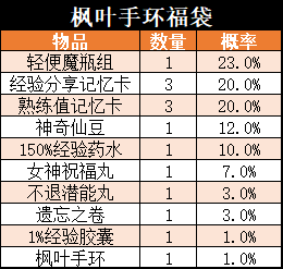 【枫叶手环福袋】、【烟花手环福袋】、【西式服装福袋】、【真爱福袋】、【雷雨福袋】、【纯白羽翼福袋】