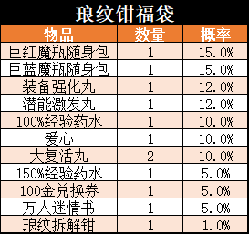 琅纹钳:可将职业专属装备进行拆解,还原为普通装备与对应的职业琅纹(每把限使用一次,使用后及消失。)