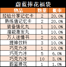 商城上架 【挚爱玫瑰福袋】 、 【挚爱手环福袋 】、 【挚爱光环福袋】、【挚爱如火】、【挚爱礼盒】;同时【蔚蓝捧花福袋】限时返场。本周每人最高可获得【福袋兑换币*120】