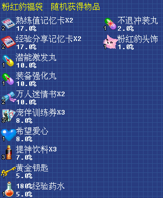 本周在点数商城购买【冰魄福袋】或【海天祥云福袋】或【粉红豹福袋】,每购买一个福袋可获得【福袋兑换币*1】