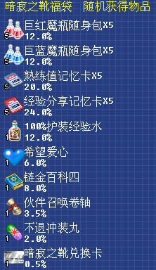 新款福袋币:全新福袋兑换币,可前往NPC【商城兑换使】处兑换全新新兑换奖励,目前仅可兑换【暗寂斗篷兑换卡】。同时可在家俱【分解化合机】内1:1兑换为老款【福袋兑换币】。