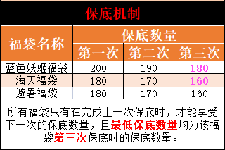 活动调整:福袋保底将采用逐次降低保底数量的机制,凡是参与本期福袋保底活动得福袋均分为三种保底数量,满足条件时即可享受对应的保底数量。