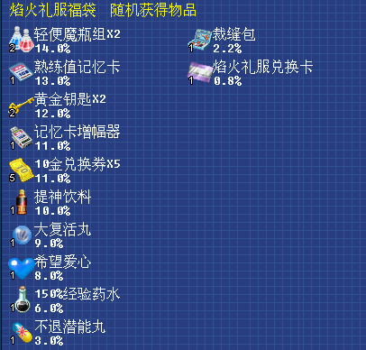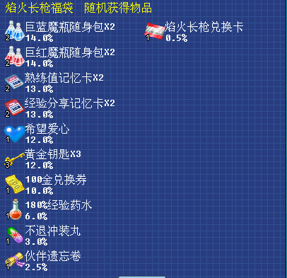 礼盒内容调整为:记忆卡练功包x3,150%护装经验水x2的超值组合包