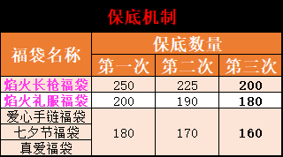 活动调整:福袋保底将采用逐次降低保底数量的机制,凡是参与本期福袋保底活动得福袋均分为三种保底数量,满足条件时即可享受对应的保底数量。