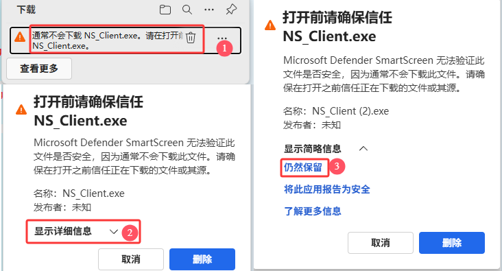 部分玩家电脑由于Windows版本较高,下载的安装包可能会被电脑系统判断为存在风险的文件,本下载链接为官方唯一下载渠道,无病毒无风险,可放心添加到电脑的防火墙信任文件中,若下载过程中出现无法下载的情况,可根据以下步骤完成游戏下载。