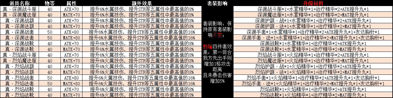 深渊魔法服(身体):MATK+60,装备后水属性技能增加6%伤害;