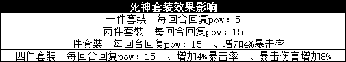 死神翅膀(死神翅膀·法):ATK(MATK)+35, SPD+45,暴击率增加3%,搭配死神套装使用,可以获得额外力量。