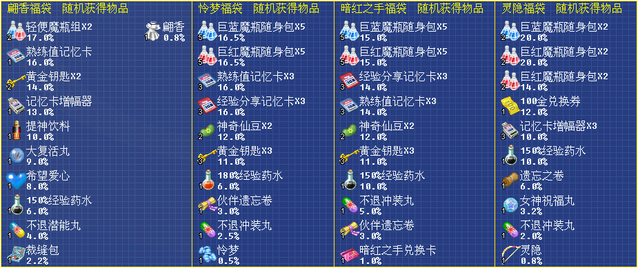 1.福袋上新:【翩香福袋、怜梦福袋、暗红之手福袋、灵隐福袋】
