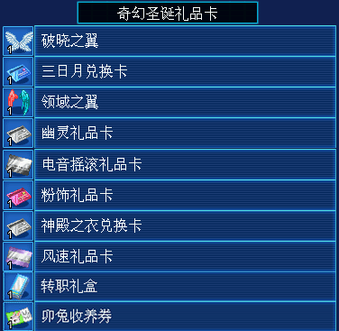 奇幻圣诞礼品卡:打开后可在下列奖励中任选其一。