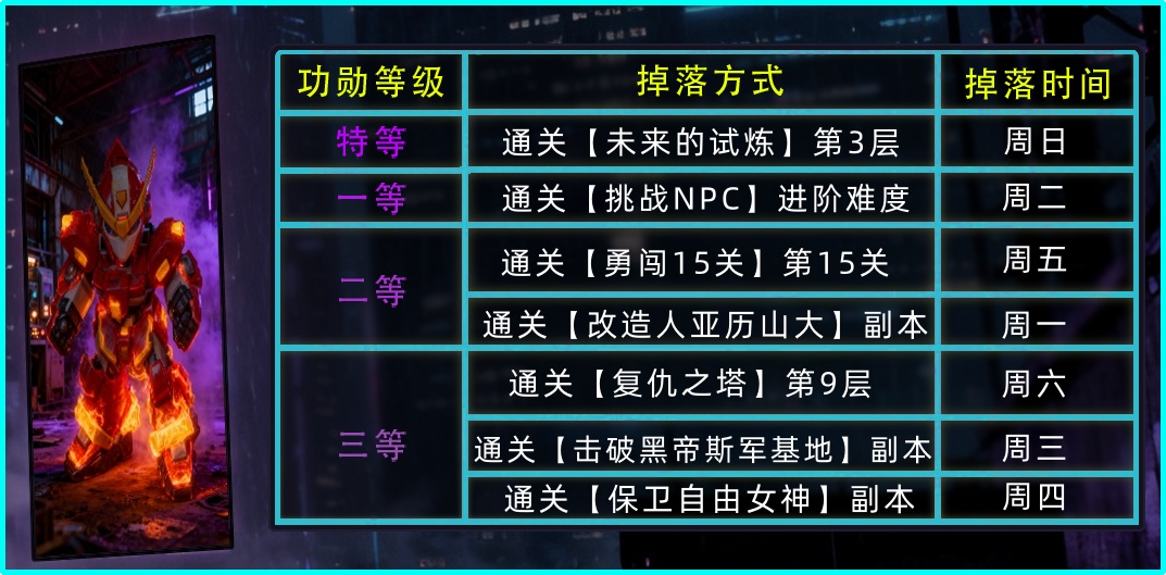 6.本周【功勋】掉落详情