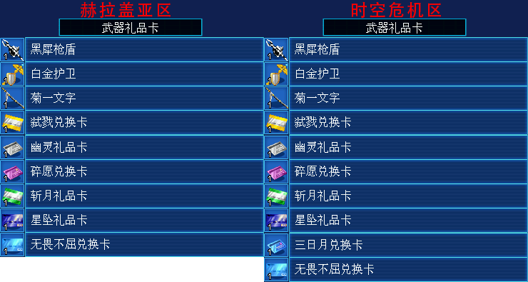 周年返场礼品卡:打开可在下列奖励中任选其一。