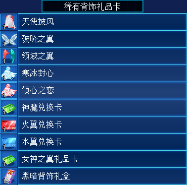 稀有背饰礼品卡:打开可在下列奖励中任选其一。